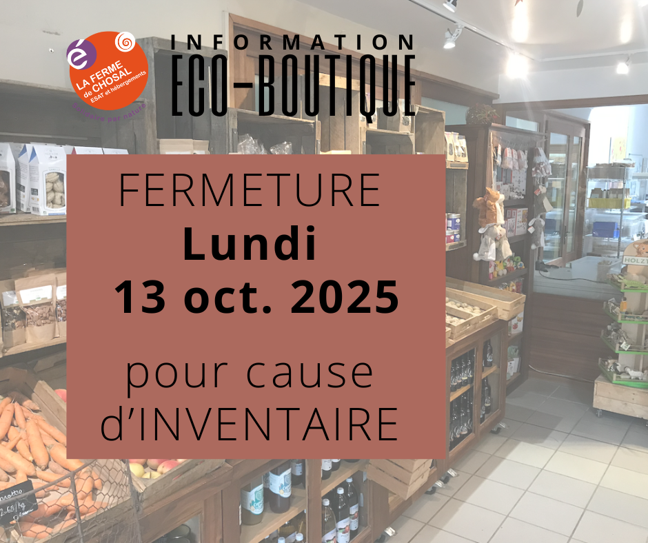 INVENTAIRE : Fermeture exceptionnelle de l’éco-boutique.