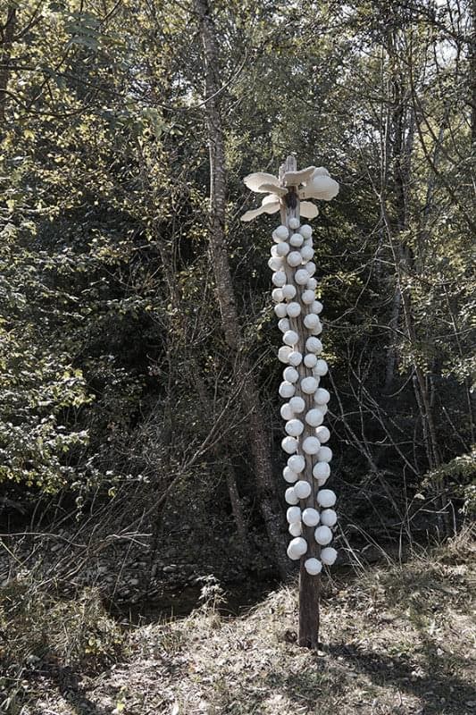Pedro Marzorati qui tente un ruban de Moebius « Moebius Inception (Commencement)» comme un mobilier de fôret en lien avec le festival des paysages d’Annecy.